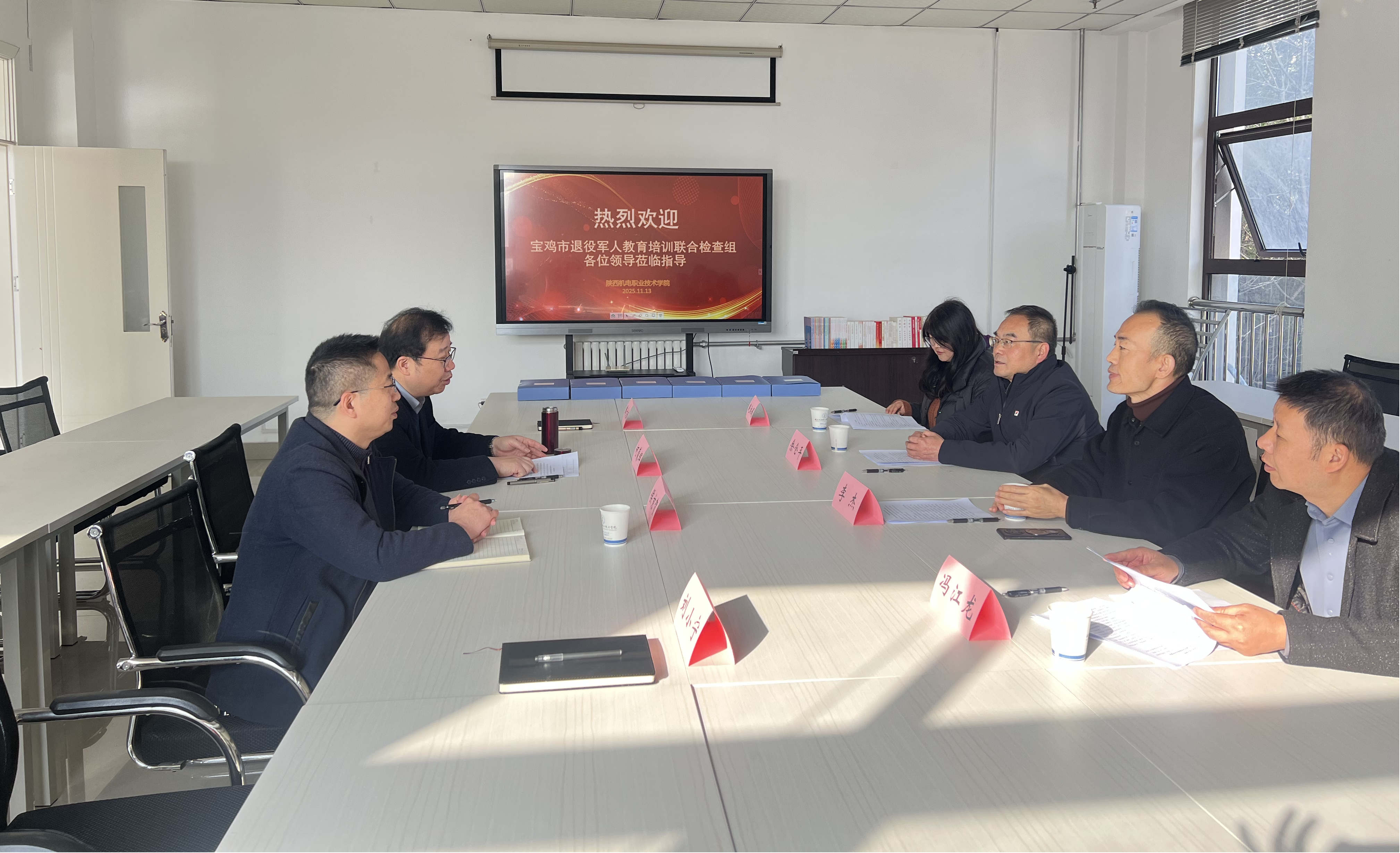 2025年11月13日上午,由宝鸡市退役军人事务局、市人社局、市教育局组成联合检查组,来我校开展退役军人教育培训专项检查与评估工作,检查评估组由宝鸡市退役军人事务局副局长李杰带队,学校继续教育与培训学院院长何蒙辉等接待并陪同检查。